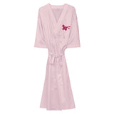 If you live an extravagant bimbo life, then you deserve this extravagantly soft and silky Bimbo Girl satin robe. The luxurious look and feel of this kimono-style piece makes it perfect for intimate events. The ultra-soft comfort makes it perfect for everyday wear. The Bimbo Girl logo is delicately embroidered in hot pink on the shimmery soft fabric.