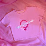 The "Hyperfeminine" crop t-shirt is a must-have for every doll who knows that femininity is power! If you were born with glitter in your veins and love to embrace your feminine qualities and aesthetic, we promise you will love this crop top, too. It’s pink, it’s glittery, it’s a hyperfeminine statement design. Embrace your femininity and take back the power!