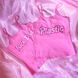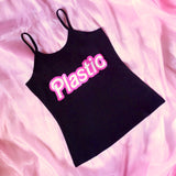 Plastic is so fantastic that we had to make an iconic tank top for all of you dolls who, like Paris Hilton, love a strappy bodycon fit. It's perfect for all you Plastic Positive queens who love being over the top!